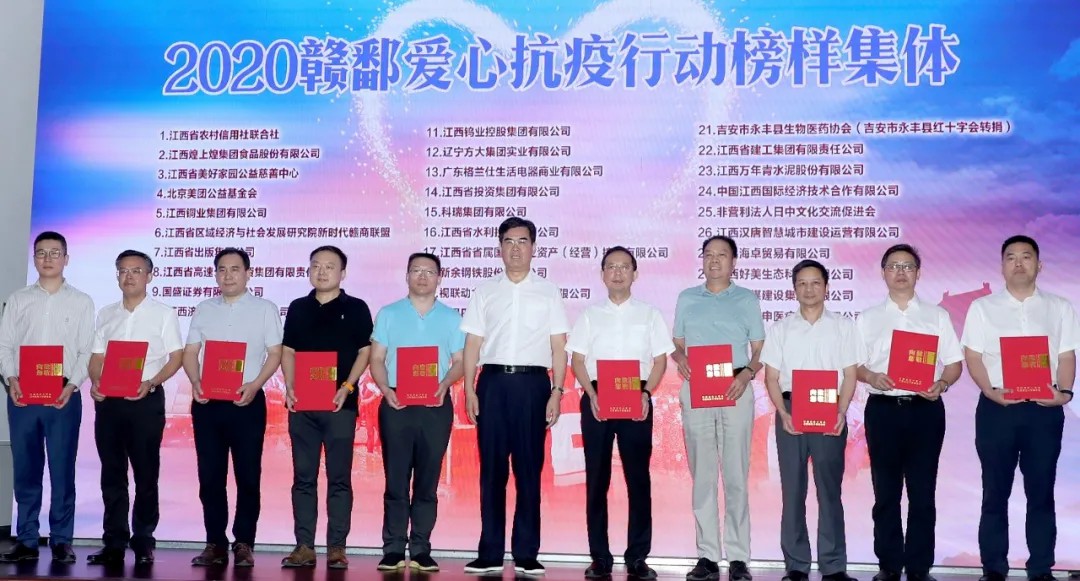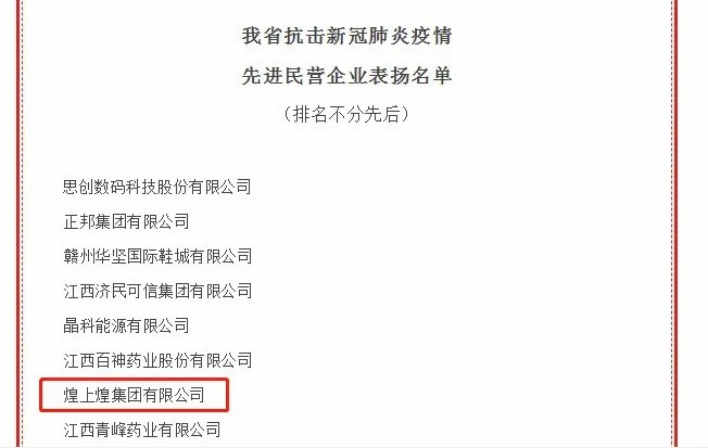 8月20日,煌上煌被評為2020年新冠肺炎疫情防控愛心捐贈榜樣集體。